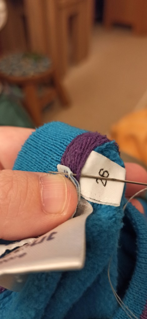 I spent a whole evening naming my sons Beavers jumpe, tops and neckchief. I don’t enjoy sewing in his name into things but I does need to be done. Sewing the neckchief was tough and the material was thick and I didn’t want the stitches to show through on the front. The things we do for our children.